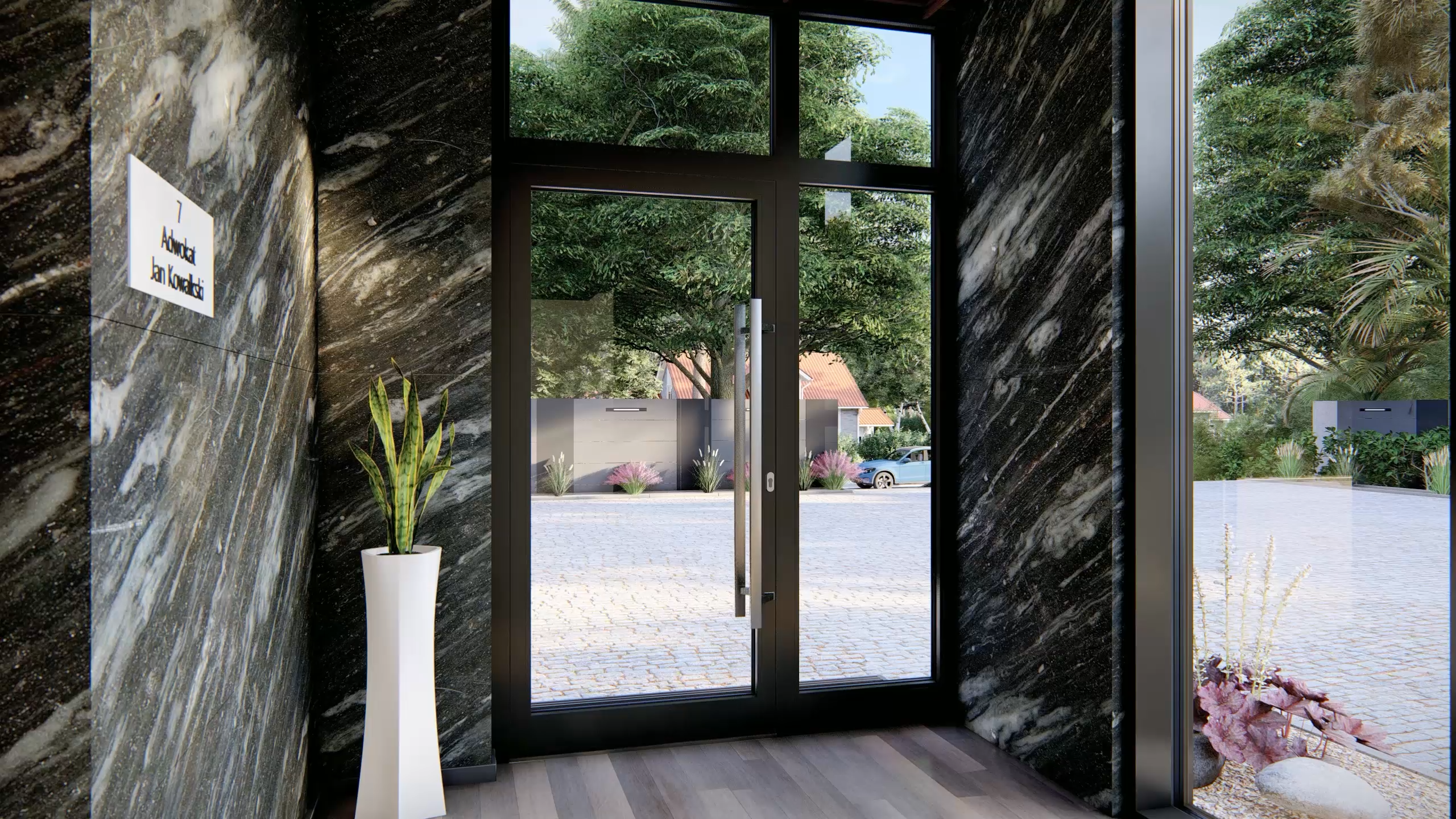 The exterior aluminium door has been designed using proven technological solutions to ensure excellent thermal insulation parameters and high comfort of use.