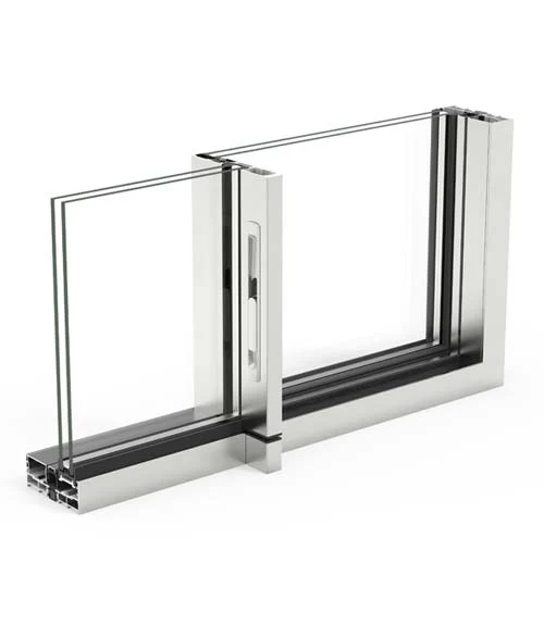 Minimalist sliding system with thermal baffle, offering maximum room illumination with a minimally visible aluminum structure. The width of the aluminum mullion is only 25/32″ and offers the possibility of hiding it in the frame.